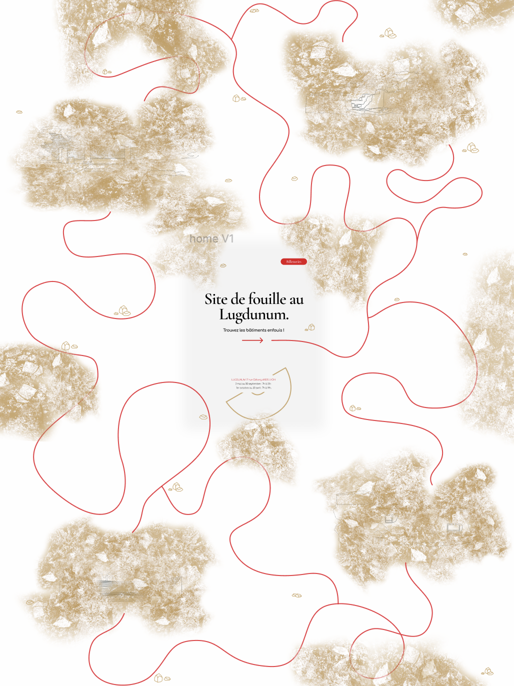 En tant que guide numérique, l’UX du site s’inspire de la structure, des fonctions et de l’histoire du lieu. Je me suis intéressé à la redécouverte du Théâtre gallo-romain de Fourvière, ancien site de fouilles archéologiques. La navigation du site reprend ce principe de fouilles : le visiteur explore le théâtre et ses environs en faisant émerger le musée Lugdunum, l’Odéon, le panorama et le théâtre lui-même de la terre. Il peu alors regarder des vidéos au ton humoristique qui accompagnent la visite et plongent l’utilisateur dans l’ambiance antique, à l’âge d’or du théâtre.